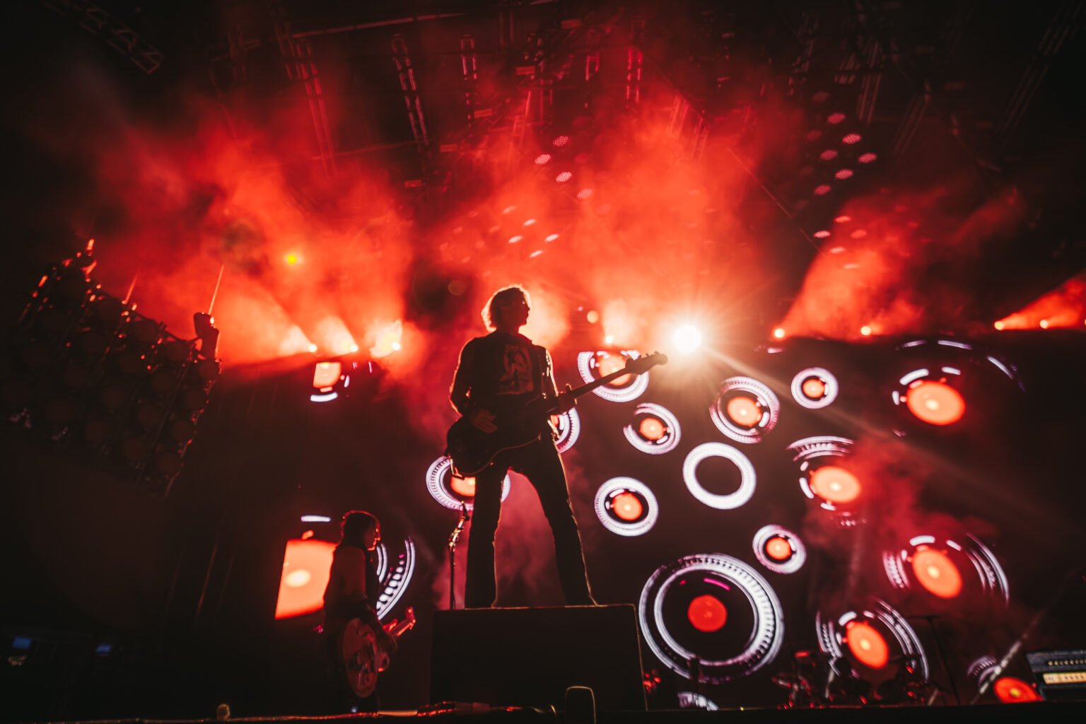 A celebração atingiu o ápice em Estranged, com o público arremessando golfinhos infláveis em uma referência nostálgica ao videoclipe, e o mar de luzes em Sweet Child O’ Mine. A tríade final com Axl ao piano em November Rain, a explosiva Nightrain e o hino Paradise City encerrou o festival em estado de catarse.