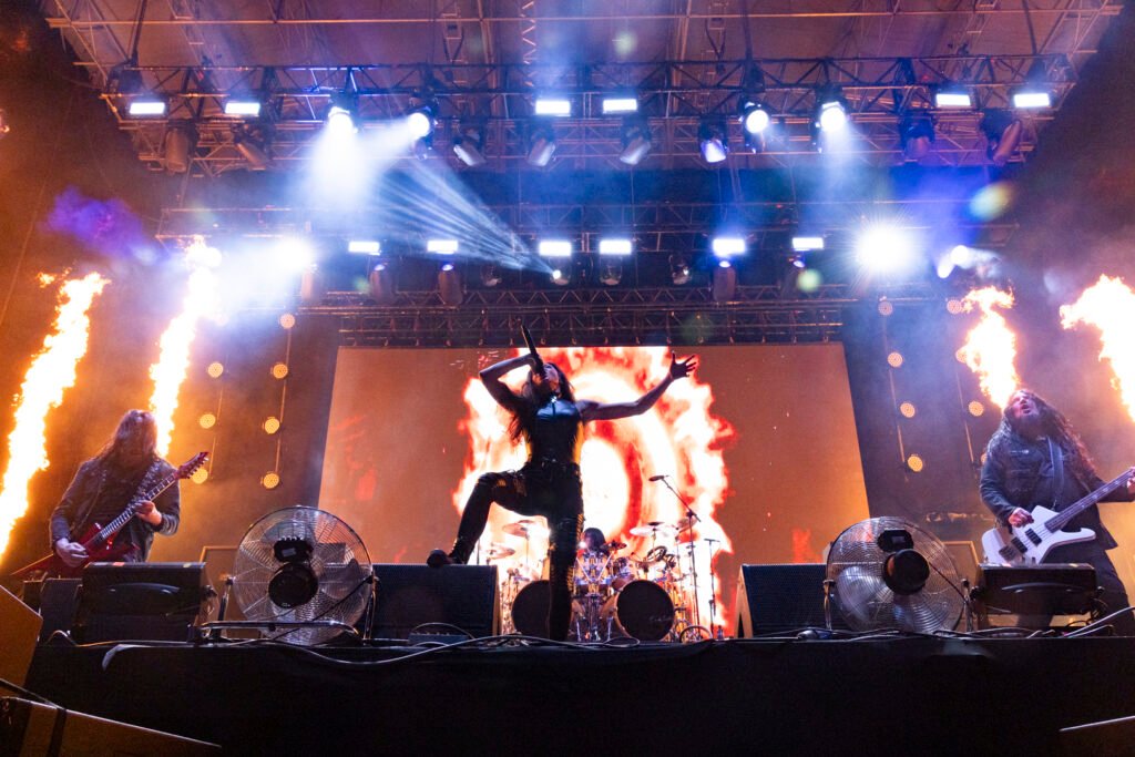 A banda, que não é boba nem nada, foi certeira na escolha do repertório inicial para validar a nova integrante. O show começou com a sugestiva Yesterday is Dead and Gone, originalmente gravada na voz de Angela Gossow, seguida por The World is Yours, da fase encabeçada por Alissa White-Gluz. Com essa sequência, a vocalista mostrou, logo de cara, total capacidade técnica e cênica para interpretar o legado das duas eras mais fundamentais da banda sueca, que marcou presença como peça-chave do festival.